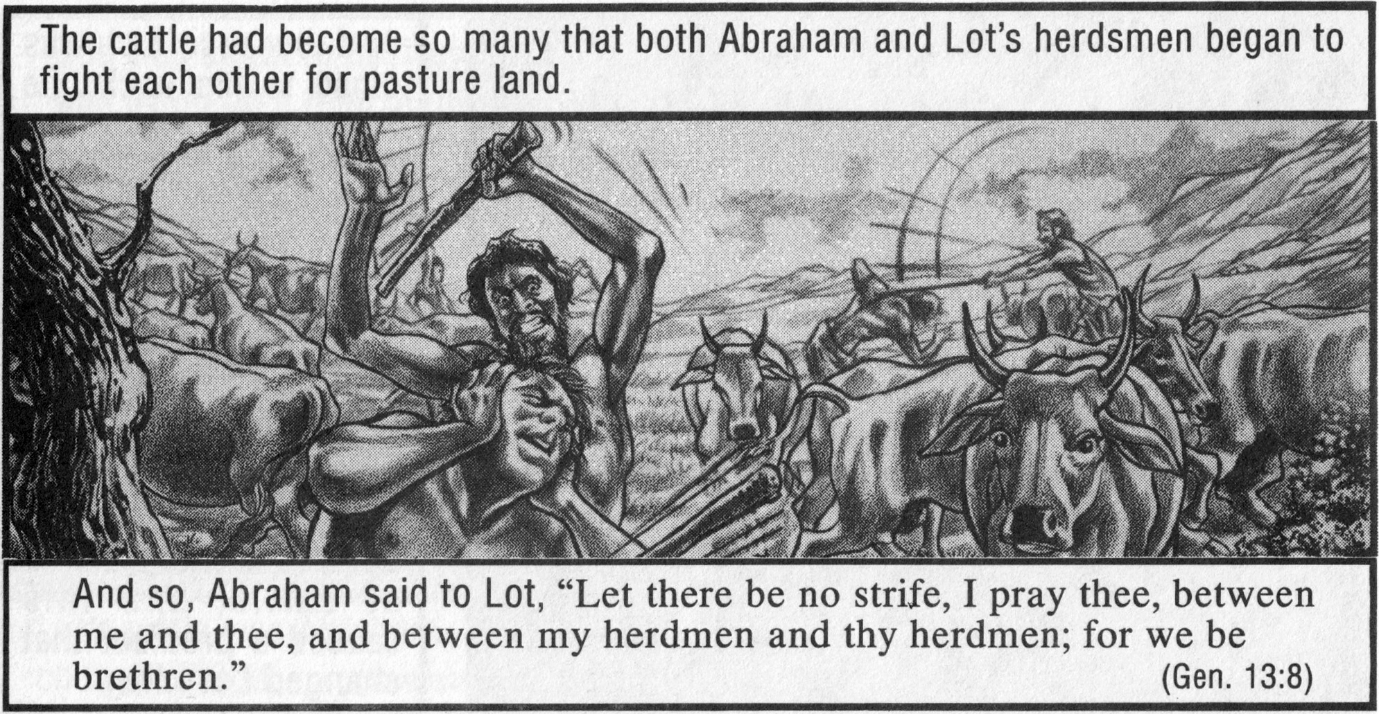 | In all likelihood, both Abraham's and Lot’s herdsmen (if either man even really existed) were probably slaves. Given some of the rules the Bible explicitly lays out for how you can deal with the living human beings you've claimed as your own personal property, it would make more sense for both to just beat the living hell out of their shepherds to restore order and ensure compliance. Just so long as they didn't do any permanent damage it's “no harm, no foul” right? | |
